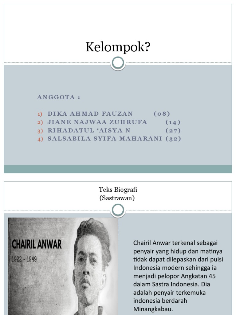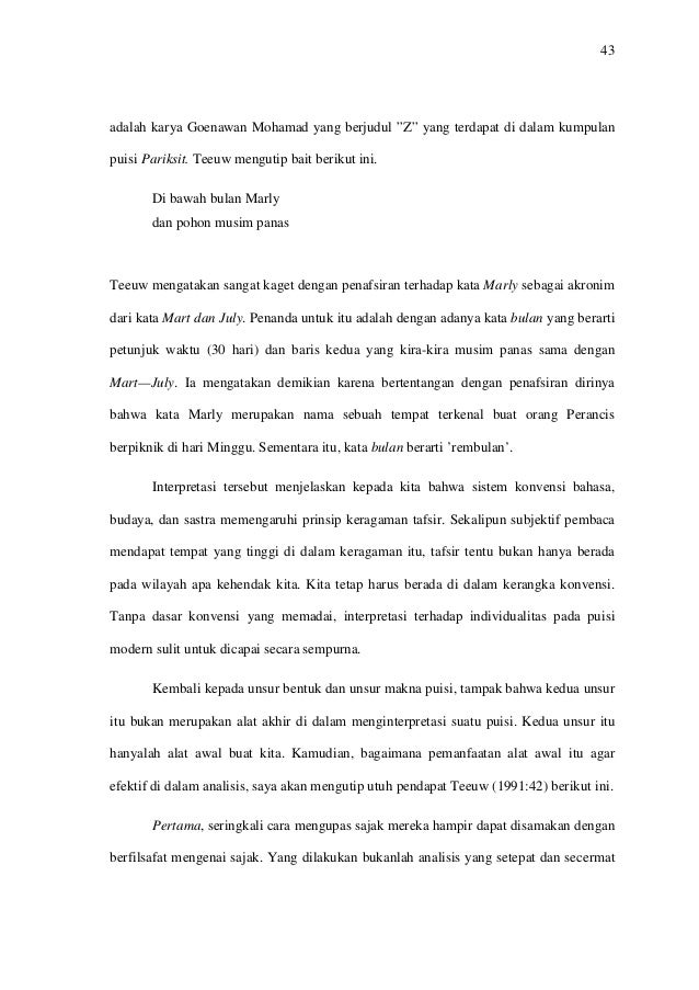 Kalau ngomongin tokoh sastrawan indonesia, pasti nggak bakalan lepas dari chairil anwar, pramoedya ananta toer, atau ws rendra. Dengan kata yang tak sempat diucapkan. Banyak buku karya sastra masa lalu yang sangat terkenal dan hingga kini perlu dipelajari oleh tunas bangsa. Buah rindu (karya amir hamzah) puisi: Selamat sore salam sejahtera dan salam sastra karena ini masih dalam bulan ramadhan bulan yang penuh berkah secara peningkatan keterampilan. 9 tokoh sastrawan muda indonesia dengan karir cemerlang. Puisi menjadi salah satu karya sastra yang paling dikenal di indonesia, karena puisi sudah diberikan sejak seorang anak menginjakkan bangku sekolah dasar. Dalam puisi semuanya jelas dan pasti. 5 buku terbaik sapardi djoko damono source: Rendra sudah tidak asing lagi bagi para pecinta sastra. Pengantar 1.1 latar belakang masalah makalah ini berjudul citra diri perempuan dalam antologi puisi perempuan penyair indonesia terkini kartini 2012 sebuah pendekatan semiotika. Si binatang jalang ini dinobatkan h.b. Selain itu, tak jarang seseorang menggunakan media puisi untuk menyatakan kasih sayang kepada orang tua atau kerinduan dengan seorang sahabat.